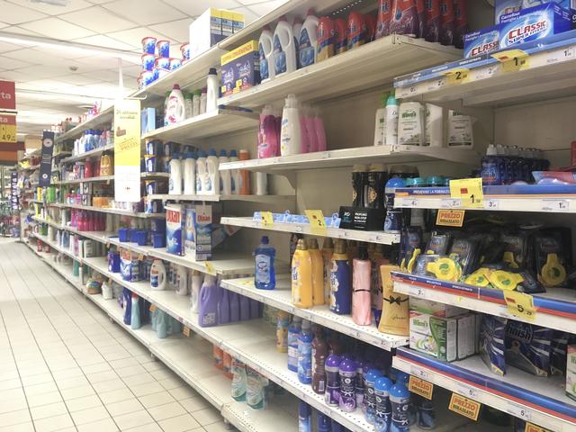 ↑ 10分くらい列に並び、お店の中に入ることが出来ました。洗濯洗剤のコーナーが品薄です。イタリア全土で自宅謹慎措置となり、もともときれい好きのイタリアの皆さんは、家の中のお掃除、お洗濯をいつも以上に沢山されているようです。