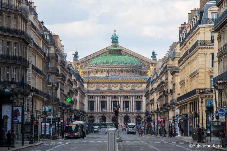 オペラ・ガルニエ(オペラ座)があるオペラ大通りは、ほかに比べれば人と車は多めです。