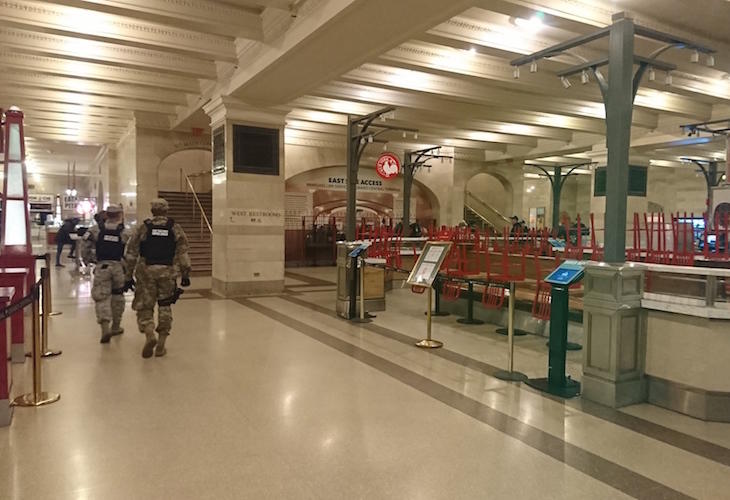 2020年3月17日 店内での飲食が禁止により、客席を片付けたグランド・セントラル・ターミナルのフードコート。