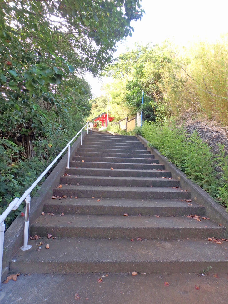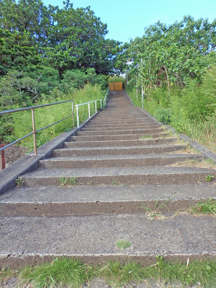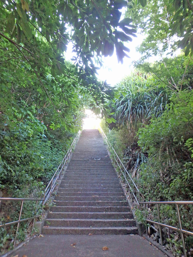 横断歩道を渡りまっすぐ進んでいくと長い長い階段が見えてきます。