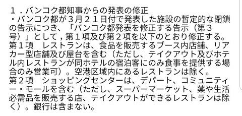 その後の発表で、バンコク都内の商業施設閉鎖の期間は4月末まで、閉鎖施設は28ヵ所から34ヵ所になっています。また、深夜の外出禁止令も出ています。詳細は、この後、アップしましたこちらの記事等をご覧ください。