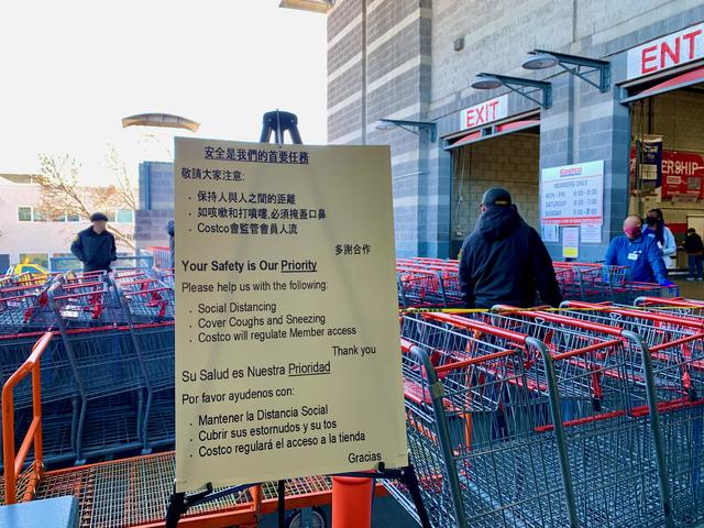 ソーシャルディスタンス(180cmの間隔)を守る、咳くしゃみはカバーする、入店規制など諸注意も明記、興味深いのが中国語がトップに表記され、次に英語、スペイン語と表記。いかに中国人利用者が多いか理解できますね。