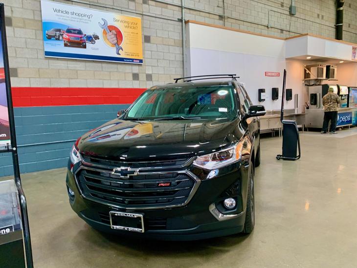 イートインスペースのテーブルと椅子は取り去られ、SUVが展示されてました。コスコって車も売ってるんですね。