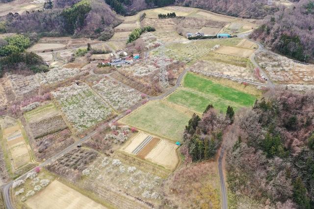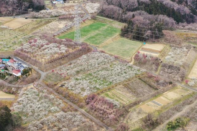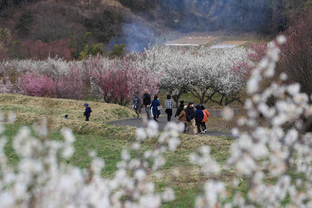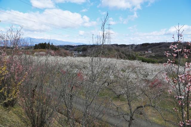 安達太良山を望む小高い丘では、約1万本の梅の花が見頃を迎えていました。