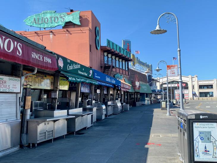4月に入り、ステイ@ホームも少し慣れてきた気がします。人との距離をおき、話すときもお互い飛沫感染を防ぐ意味で同じ方向を見ながら、エレベーターは誰かが乗っていたら一緒に乗っていいか確認するし、公共交通機関では、最低でも通路を挟んで前後を外し、お互い窓側に座る暗黙のルールが確立されています。先日ちょっと用事がありフィッシャーマンズワーフに行ってきたので、今のフィッシャーマンズワーフがどうなってるか見てきました。