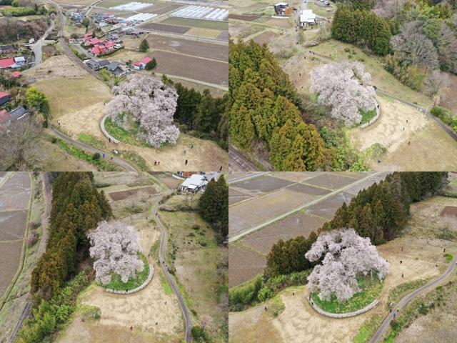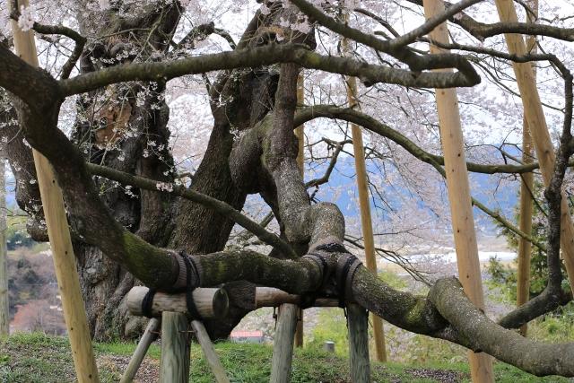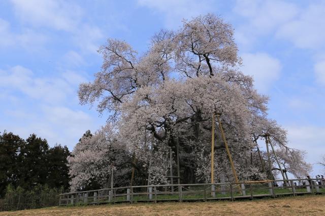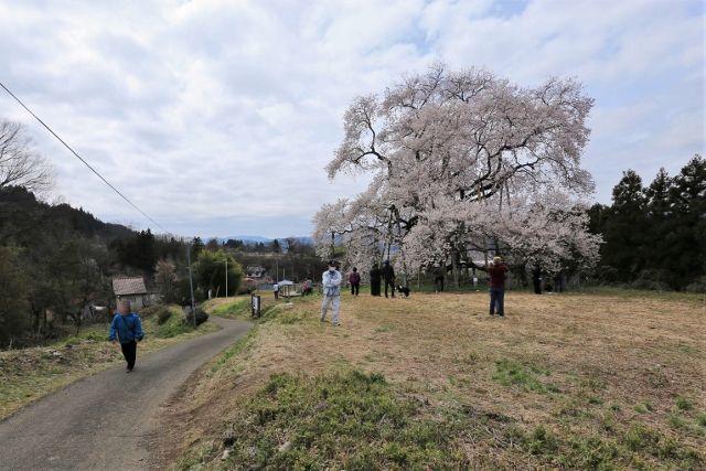 県内では比較的早く見頃を迎えるエドヒガンで、樹齢約600年、樹高は約18mの巨木。