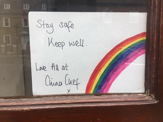 昨今お店や民家の窓辺でよく見かけるのが、こんな虹の絵。このウイルスが1日も早く終息して平穏な日常が戻るように、という希望を込めたアピールです。幼い子供たちによるかわいらしい絵も多く、遊びたい盛りの子たちも自宅待機生活を余儀なくされていることに心が痛みます。