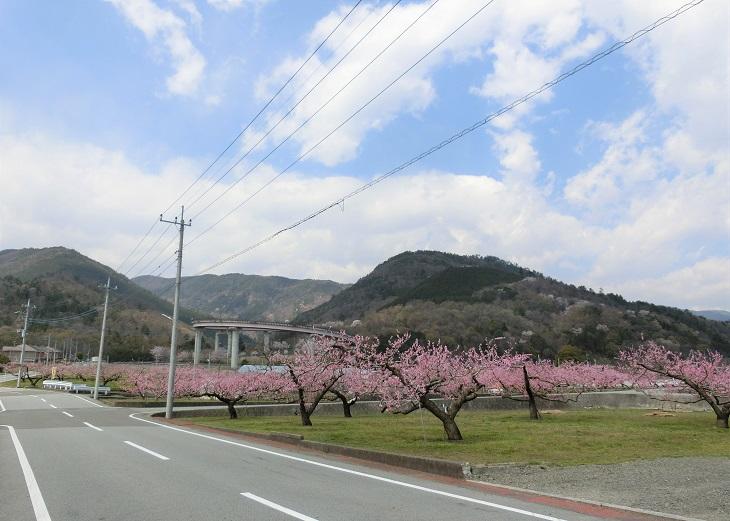 小さな桃畑ですが20以上はあったと思います。その濃く明るいピンクに癒されながら走りました。こんなふうに桃畑に花桃の木を植えているところもあったりして、かわいかったです。