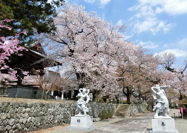 このしだれ桜は樹齢100年以上の古木で、お寺が全焼した火災にも負けず、人々を元気づけるかのように毎年美しい桜を咲かせているそうです。