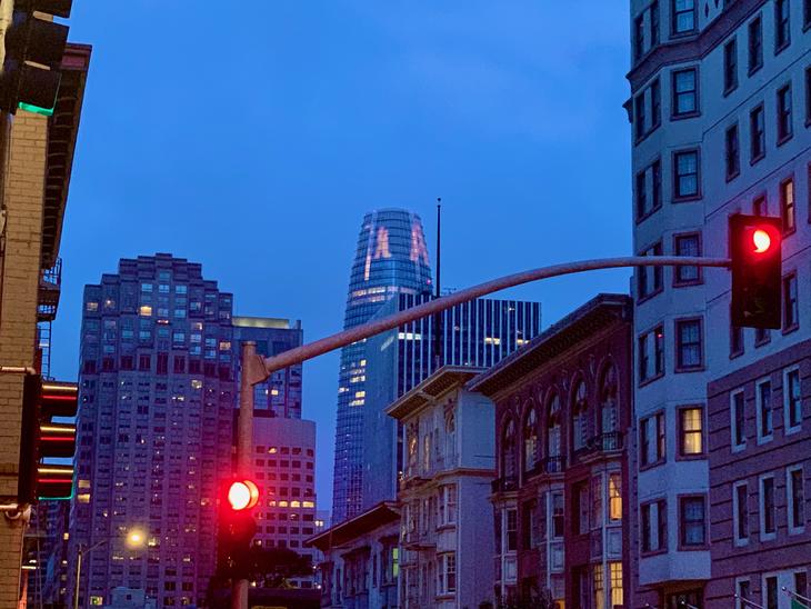 そうしたらなんと先月末から、サンフランシスコでもっとも高いビル"セールスフォース・タワー(Salesforce Tower)"で、新型コロナウイルスの感染者の方たちを過酷な状況下でケアしている医療従事者の方へ、感謝と励ましの意味を込めて、トップクラウンLEDスクリーン(8階の高さに相当する360°王冠のようなスクリーン)サイレント拍手を"贈っていた"んですね。