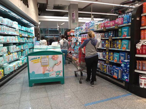 現在 スーパーのレジ付近にはこのように目印のラインが貼ってありまして、近づかないようにとなっています。社会的距離を保つためで感染を予防する訳です。
