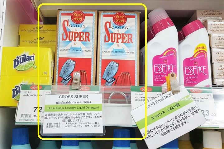 Super Crossの洗剤は、100mL以上の容器に入っていますので、飛行機に乗る際、手荷物として機内に持ち込むことはできませんが、タイ在住者のなかには、一時帰国の際、洗剤(※ただし、塩素系のものはスーツケースに入れての預け入れもできません)やシャンプー・リンスなどの日用品をスーツケースに入れて持ち帰り、お土産にしているという方もいます。気になる日用品を、お試しでお土産として買ってみても、実用性があってよいのでは、と思います。以上、参考になれば、幸いです。