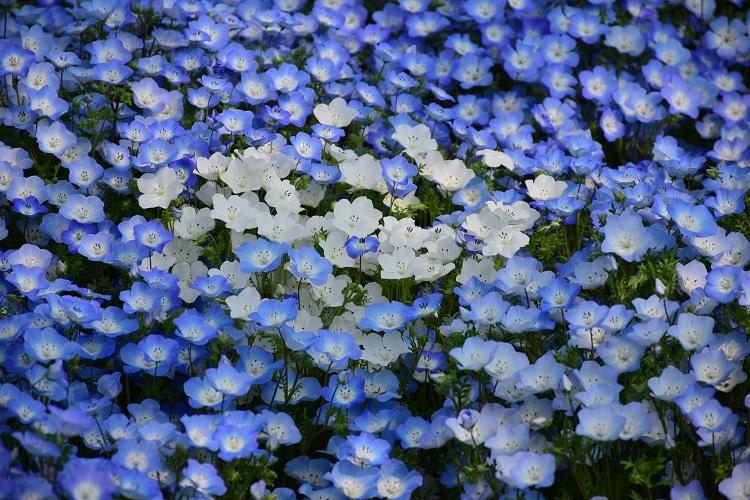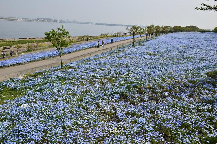 ウェブサイトでも現在のネモフィラの様子を見ることができますので、ぜひお楽しみください。見頃のようですね。https://seasidepark.maishima.com/nemophila/