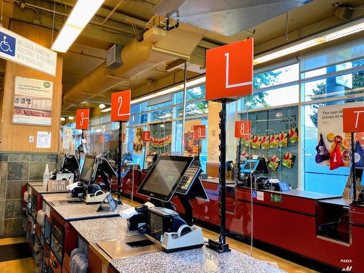 スーパーではレジの人の感染を守るために、透明の仕切りが登場しています。スーパーによっては、会計が済むまでレジに近寄らず、係員が袋詰めを終えた時点で支払いを済ませる、と行った方法が取られているお店もあります。