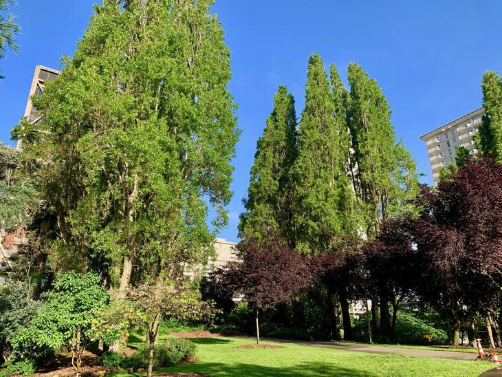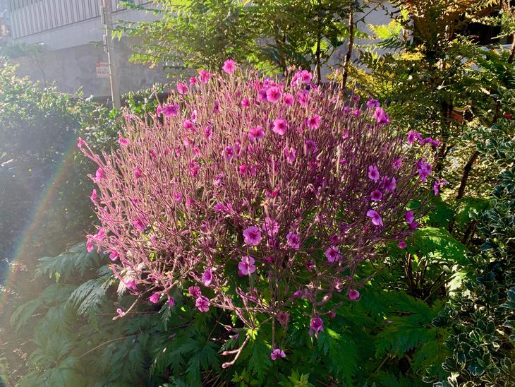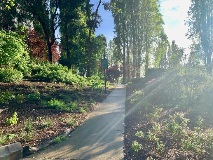 芝生のスプリンクラーが作動していたので、そのおかげかどうか怪しげな人も居ず(そもそも人がいない)水滴がキラキラ葉っぱについていて、植物が生き生きしています。ここに来ると誰もがフォトグラファーになれる! そんな清々しい自然を感じますよ。とってもたいへんなときですが、かなり癒されました。