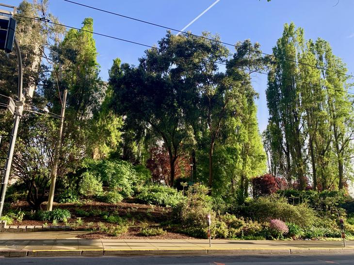 実はここ、元ペット、今じゃ野生化したインコ(南米辺りの外来種主、Cherry-heads種)がいっぱいいて、鳴き声がちょっと騒々しい広場でもあるんです。ほかの鳥のさえずりは聞こえてきますが、インコの鳴き声が聞こえないですね、今のサンフランシスコの不思議、あのインコは何処へ行った……