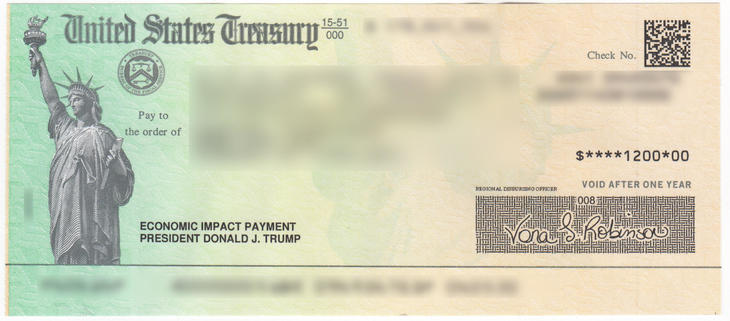 納税者ひとり当たり$1200を、銀行振込または小切手にて支給。子供にはひとりにつき$500。ただし、社会保障番号がない留学生や密入国者、永住権申請中の人たちへは支給されません。
