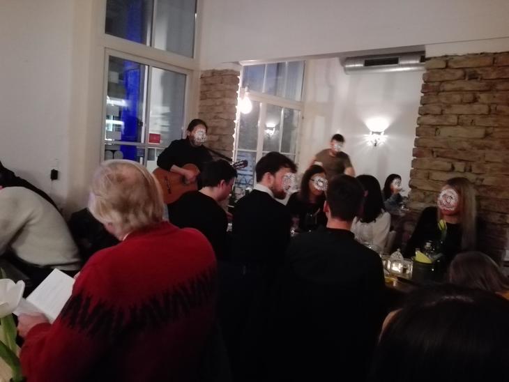 人気店Toma Tu Tiempoは、週末の夜ともなるとすぐに満席。店内ではスペインギターのライブも始まります。