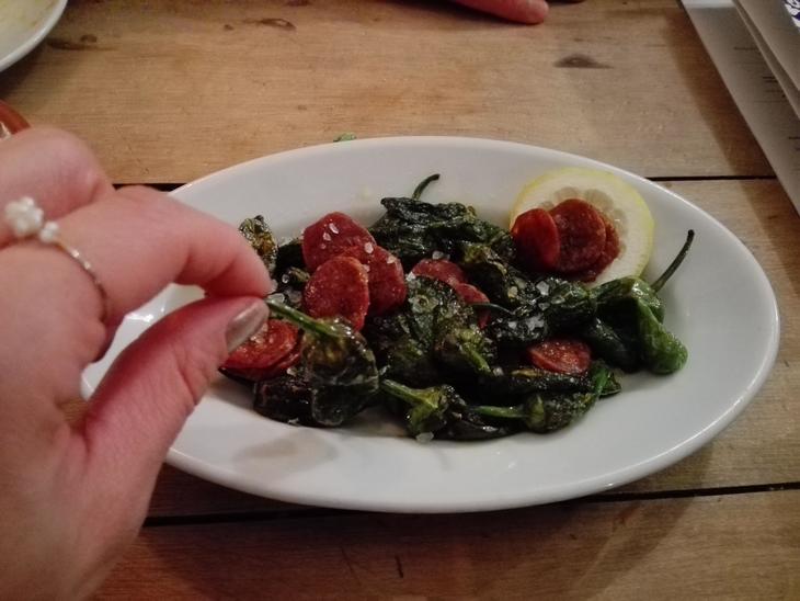 これはシシトウに似た、唐辛子の一種をグリルした「ピメント・デ・パドロン」。ビールにもワインにも最適なおつまみは、食べ始めたら止まりません。