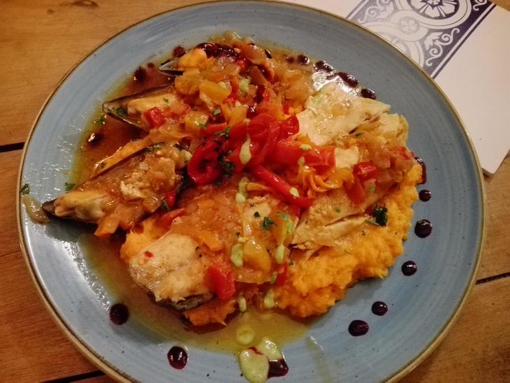 ちなみにこちらが今日の特別メニュー、シーバスとムール貝。オーストリアでは珍しいシーフードメニューがうれしいです。