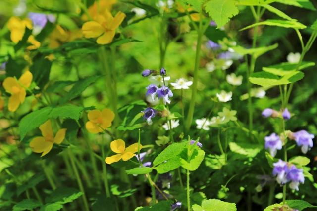 見頃を迎えているヤマブキソウを中心にお花畑コースを巡ります。