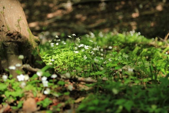 ヤマブキソウは入口付近からすぐに見られますが、前半の主役はニリンソウです。