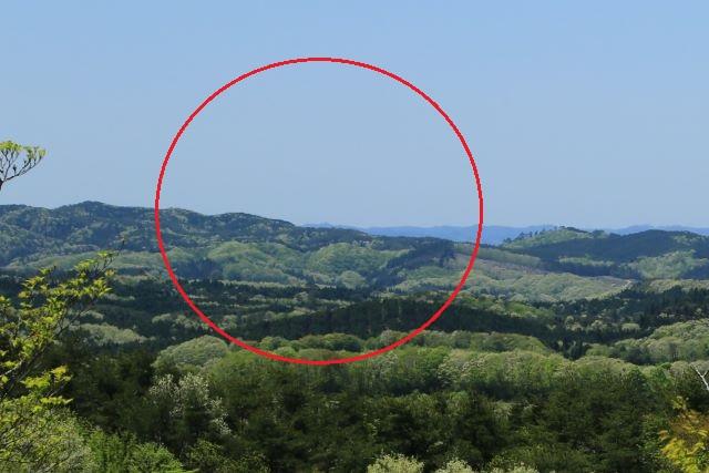 いわき市街地方向には、薄っすらと太平洋が確認できます。