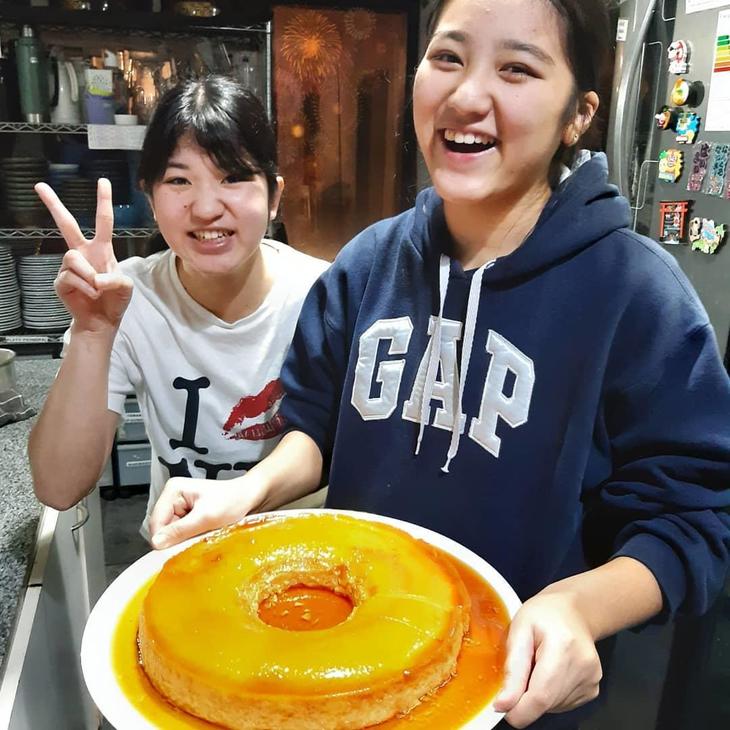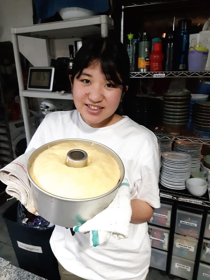 そしてデザートにはアナさんの家庭の思い出の味や夫玉城ヘルマンさんのお母さん、義理のお母さんの味も加え、新セットのデザートメニューにたとえばレモン蒸しケーキと、どちらかというと今度はアルゼンチンと日本折衷の味に展開しているものを。また子供たちにも教えています。