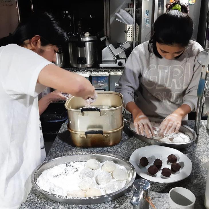 あんもちにも挑戦! 日本からの姪御さんには逆にいい体験になりました。日本でもおもちやあんこなんて家庭ではなかなか作りませんからねー。