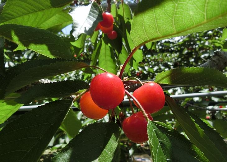 おいしさの秘密のもうひとつは、観光農園向けのY字型栽培です。長い日照時間とまんべんなく日が当たるこの栽培方法で、大きく粒ぞろいに育ち、糖度20度以上(佐藤錦)という甘みが生まれるのだそうです。