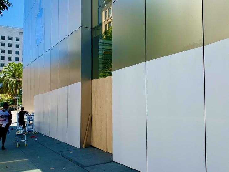 ピックアップだけでも再開できて喜んでいたのに、被害に遭ったアップルストアも対策をこうじています。プロテクトシールのお洒落度はさすがアップルです。しかしガラスのひび割れが痛々しかったです。サンフランシスコの場合は、各店舗それぞれ板張ったり、警察の方達の平和的に努力、心ある対応のおかげで、日を追うごとに"平和的な抗議(Peaceful Protest)"になっています。焼け焦げた後や略奪した痕跡も日々少なくなってきて安堵しています。