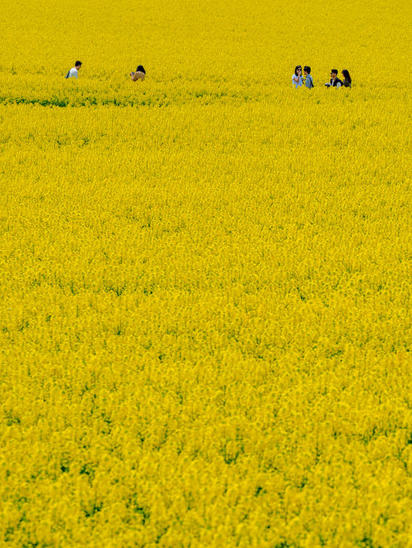 広大な畑で育つ菜の花の黄色い世界をご堪能ください。