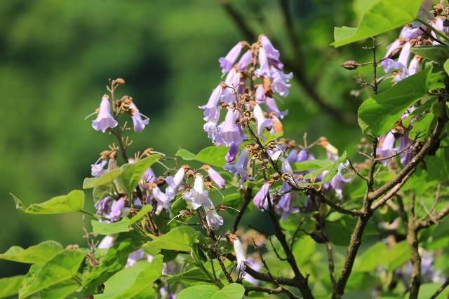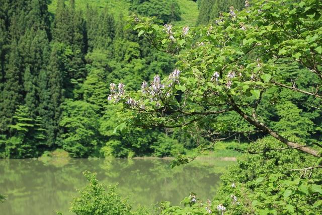 沿線沿いでは、三島町の特産「桐」の花が咲き誇っていました。