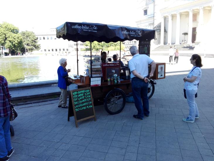アイスコーヒーが人気のコーヒースダンドも忙しそう。