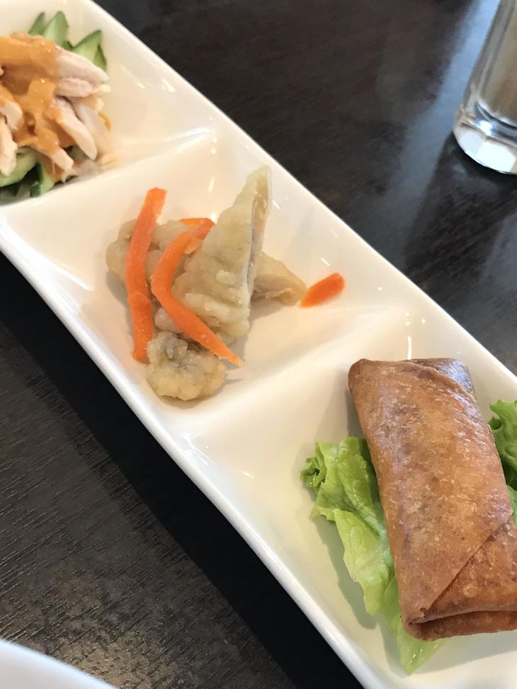 天心3種(棒棒鶏・アジの南蛮・春巻)