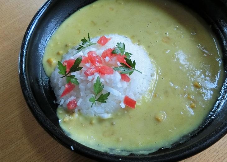 お味はやや辛口で、ココナッツミルクと鶏ひき肉がコクを生み出し、スパイシーな本格カレーになっています。それに加えてきみひめが甘くシャキシャキしていてとってもおいしいです。