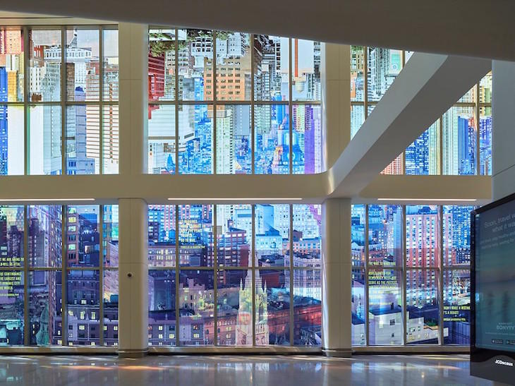 85万平方フィートの広さがある、4階建てのターミナルB離発着ホールは、ニューヨークご自慢の飲食店やしゃれたショッピングエリア、広くてモダンなトイレ、印象的なパブリックアートがあり、ニューヨークを訪れた旅行者にニューヨークらしさを満喫させます。ダサい店しかないと笑われていましたが、ブルックリンダイナー(Brooklyn Diner)、ジュニアズ・チーズケーキ(Junior’s Cheesecake)、ヒルカントリーBBQ(Hill Country BBQ)、シンクコーヒー(Think Coffee)、イーライズ(Eli’s Essentials with Offerings from Eli Zabar)、ニューマルベリーストリートレストラン(New Mulberry Street Restaurant by Chef Marc Forgione)が誕生。