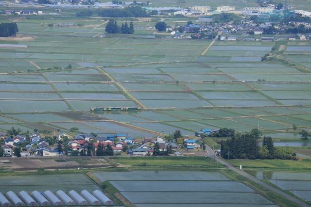 見晴台からの眺めです。やや霞んでいますが、会津盆地や磐梯山などが見えています。