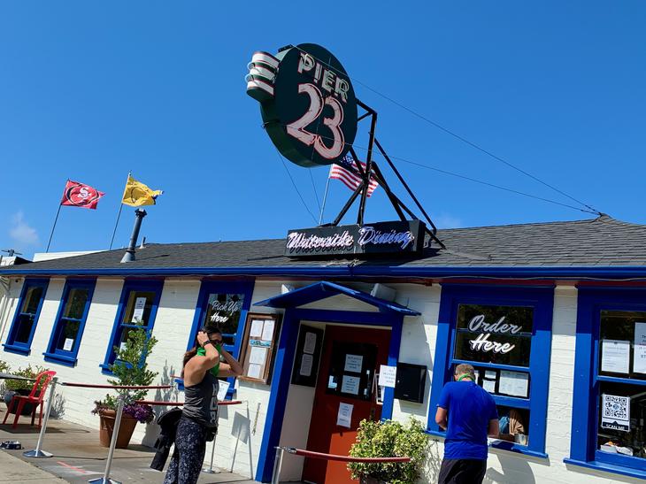 フェリーターミナルからピアを数字が大きくなる方、フィシャーマンズワーフ方面へ向かってみた。ピア1ペルー料理『ラ・マール(La Mar Cebicheria peruana)』のパティオはオープンしてましたが、早速長蛇の列(苦笑)で断念。The Piers(Pier11/2、3、5)周辺は、徐々に再開。サンフランシスコで最も美しいと言われれいるピア7の『ウォーターフロント(The Waterfront Restaurant)』期待してが、残念。そして桟橋の数字は大きくなってピア23『ピア23カフェ(Pier23 Cafe Restaurant & Bar)』は、オープンしてました。