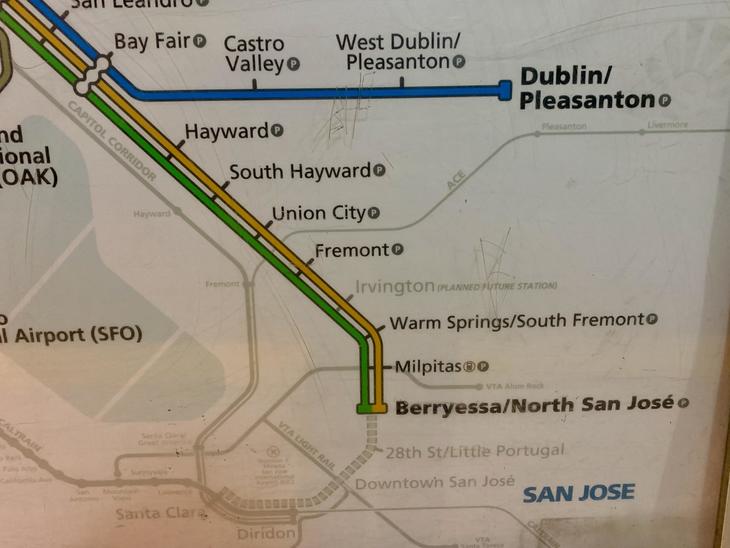 新駅"ミルピタス(Milpitas)"と"ベリエッサ(Berryessa/North San Jose)"は元より、ヘイワード(Hayward)駅からフリーモント(Fremont)方面は利用した事がないので、恥ずかしながら冒険気分です。