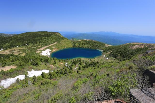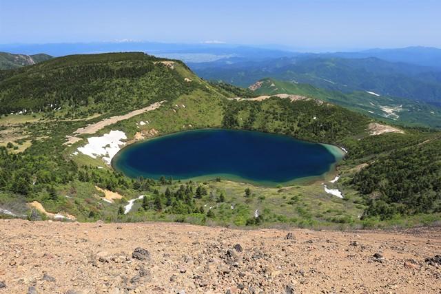 一切経山の山頂部にある定番スポットより望む五色沼