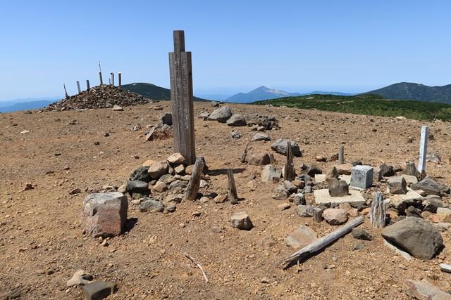 広くなだらかな一切経山山頂の様子です。