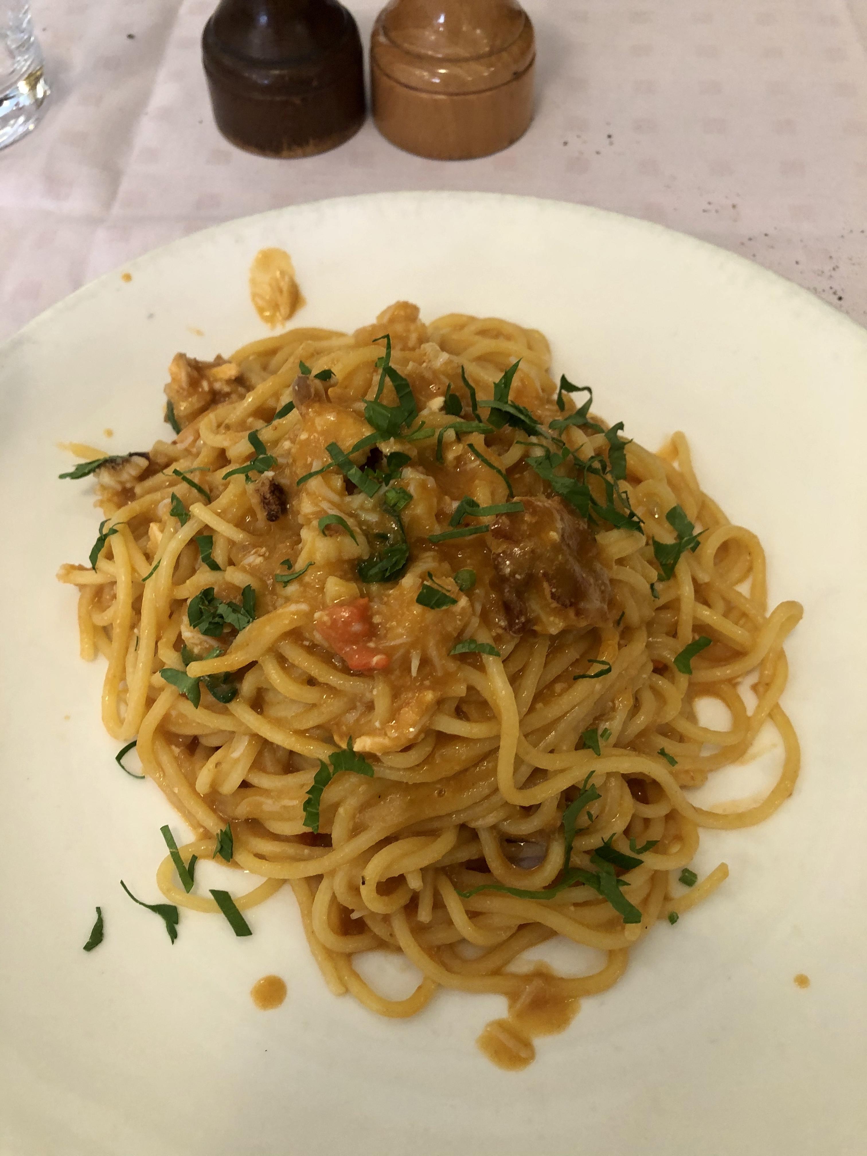 私たちは蟹のスパゲティにしました。