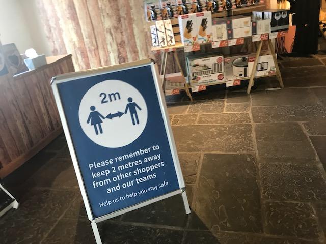 現在も残念ながら、カフェレストランとキッズエリアはロックダウン下のため、休業中で入れませんが、店内のそのほかのエリアはすべて一方通行システムと2mのソーシャルディスタンスを確保するための案内が徹底され、お客様が安心して買い物を楽しめるよう、また、スタッフも安全に働けるように配慮されています。