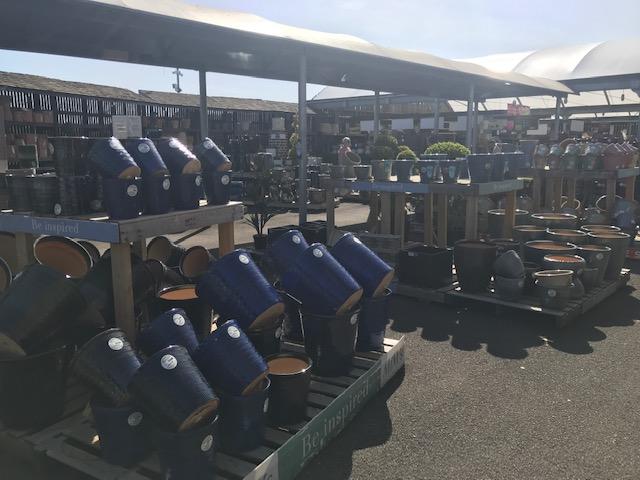 ▲ 屋外に陳列されている鉢も素材やデザイン、カラーにサイズと豊富なラインアップ