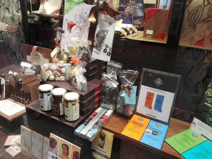 こちらはお店に入ってすぐ目の前にあるチョコレートの量り売りコーナー。パンプキンシードオイルや果物のリカーなどを使った珍しいチョコレートもあります。店員さんにおすすめを聞けて、気になるチョコレートは味見もさせてくれますよ。