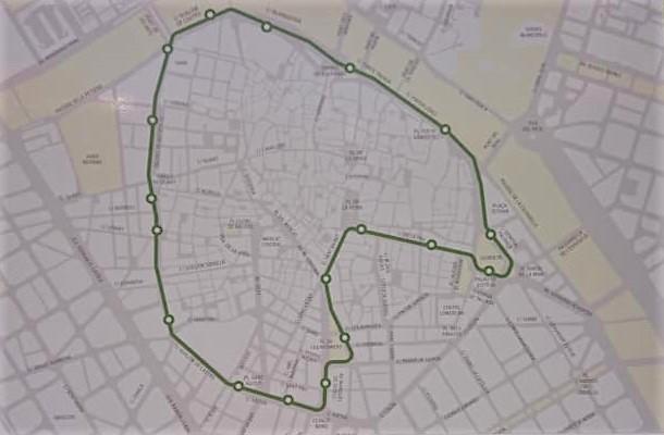 この路線のルートには鉄道駅、闘牛場、市役所広場、大聖堂、近代美術館、セラーノスの塔、クアルトの塔などがあるほか、バス停から少し歩くだけで聖母広場や県立美術館、陶器美術館、中央市場、ラ・ロンハ、絹博物館などがあります。旧市街の観光に役立ちそうですね。バレンシアにお越しの際にはぜひご利用ください。
