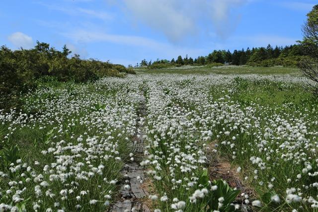 ワタスゲの群生地は、山頂標識を過ぎてからが本番となります。
