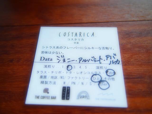 一緒に渡してくれたカードには、オーダーした内容で選んでくれた豆のデータが書いてあります。