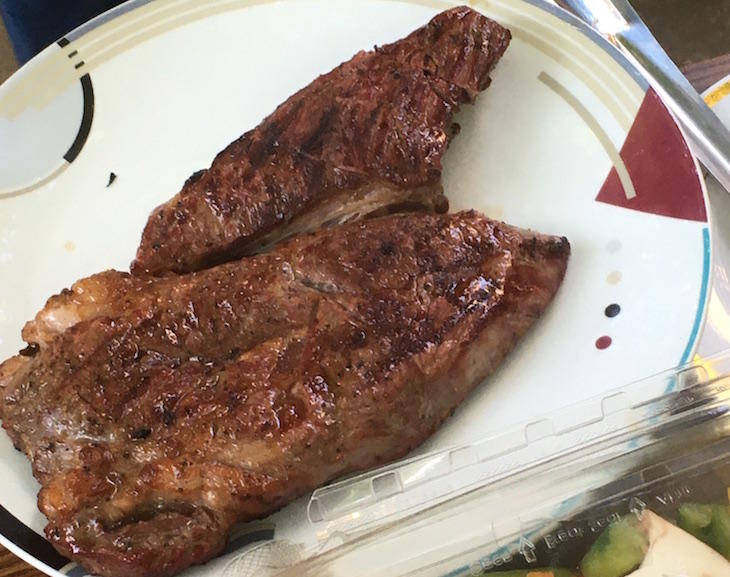 お肉はカルビやロースなどを用意しておりましたが、またステーキ(1.4パウンド/635g)を持ってきてくれた人がいて、お肉もたっぷり。シャンパンのあとに、スパークリングワインや赤ワイン、ビール。空き瓶を見ると、男性陣はずいぶん飲んだようですね。